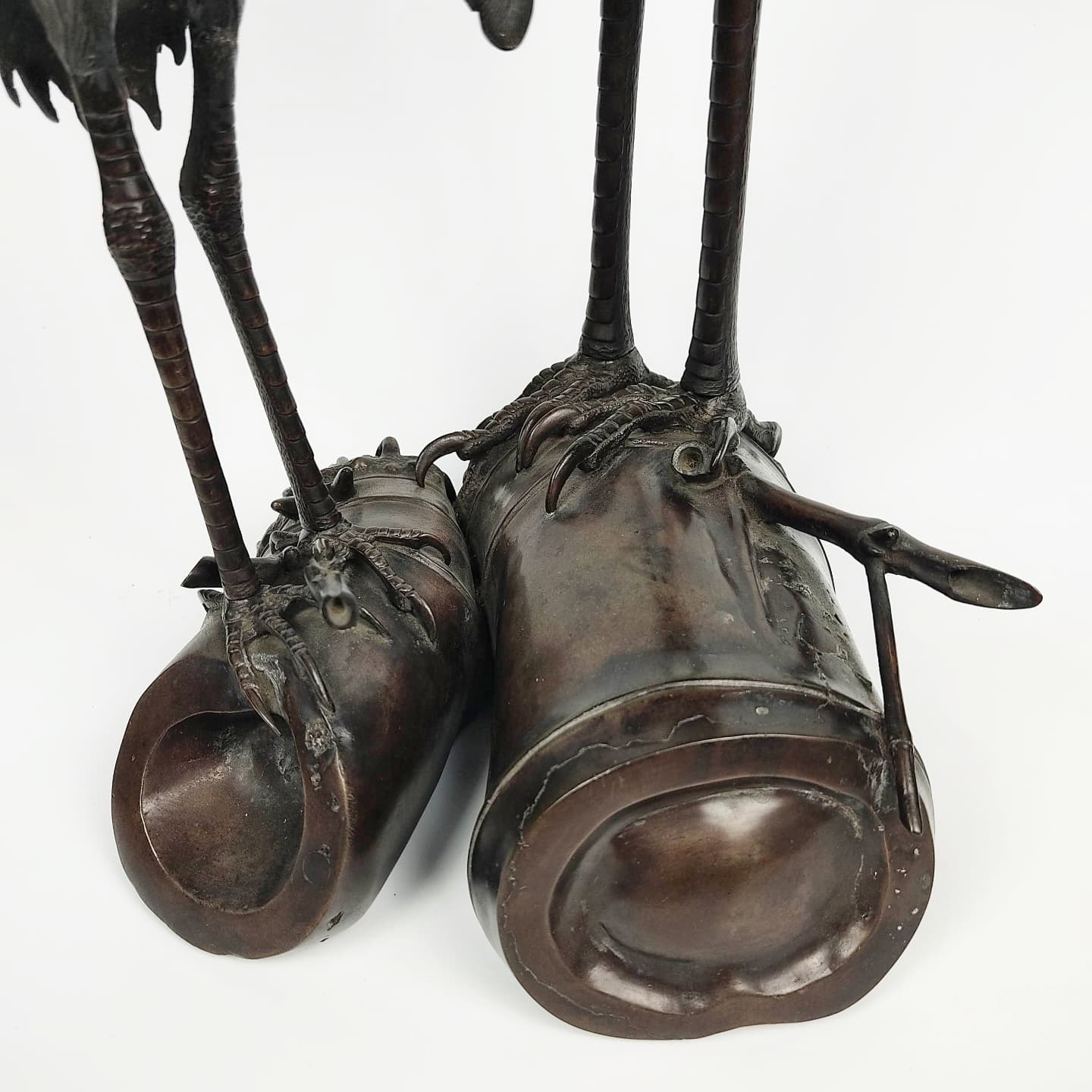 羽の部分や、竹の朽ちた様子など細かい所まで仕事が行き届いています。目は鍍金されています。