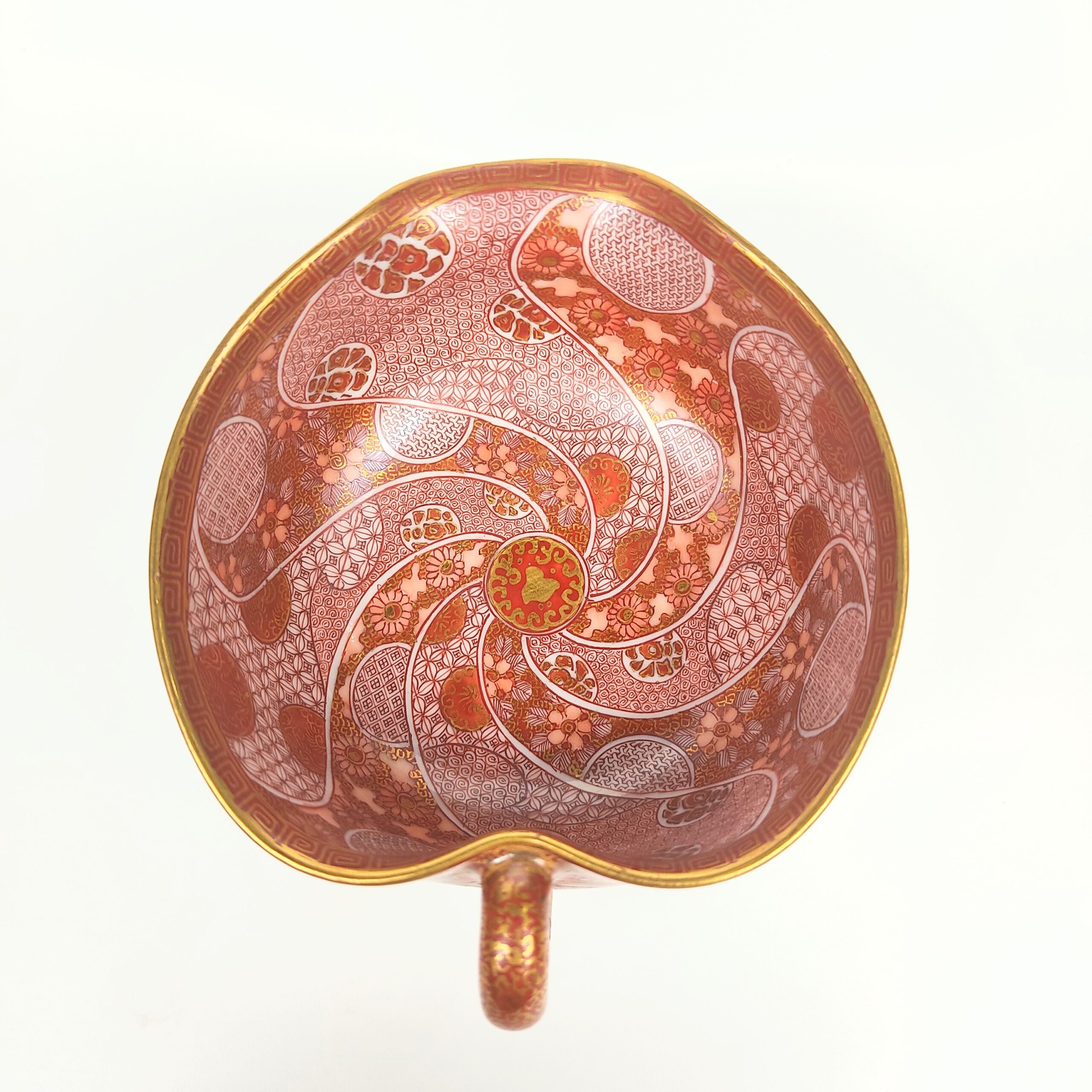 九谷焼 赤絵金彩賢人捻り丸文茶器揃 在銘