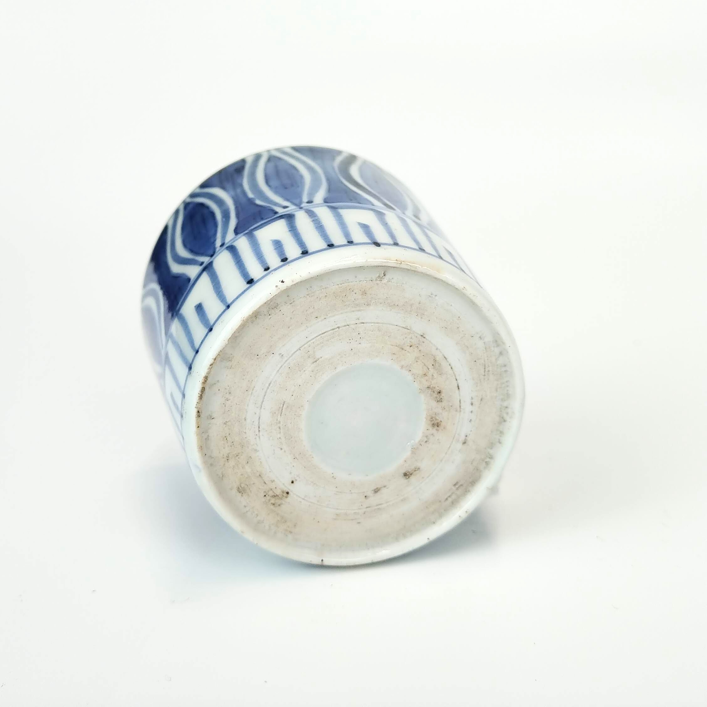 Imari blue and white soba cup with design of ogee pattern
