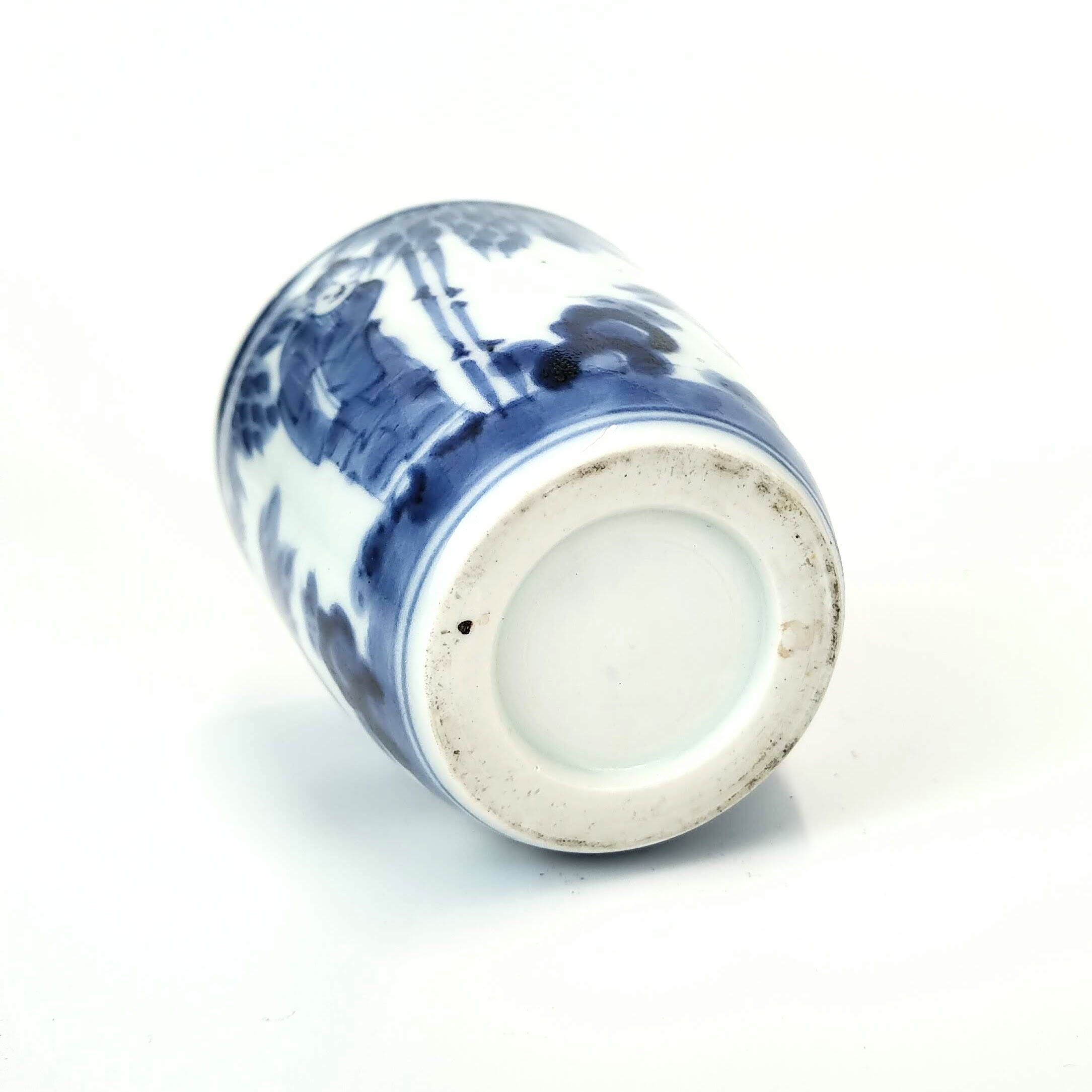 Imari blue and white soba cup with design of sage in bamboo bush