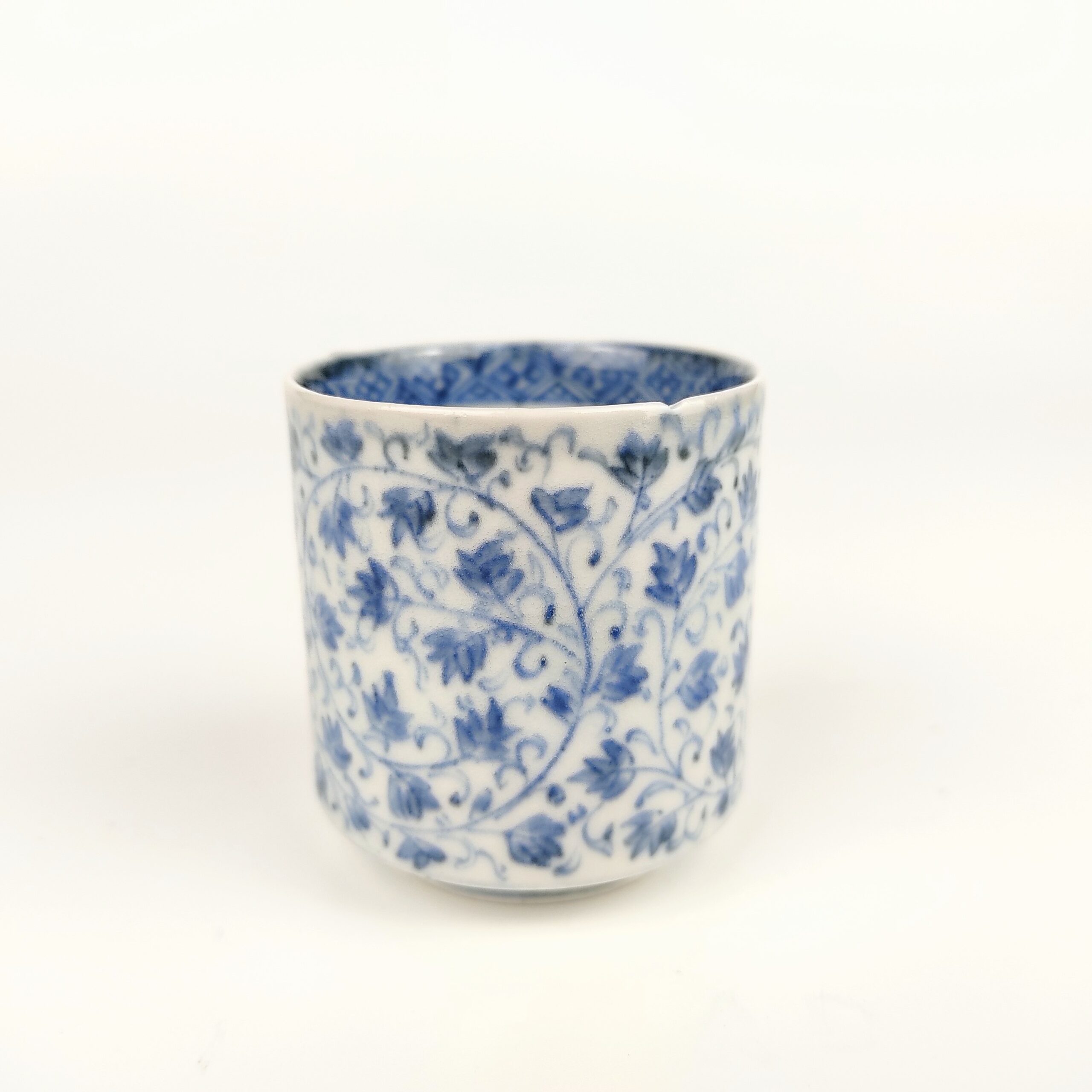 imari ware blue and white small cup with design of bush clover arabesque