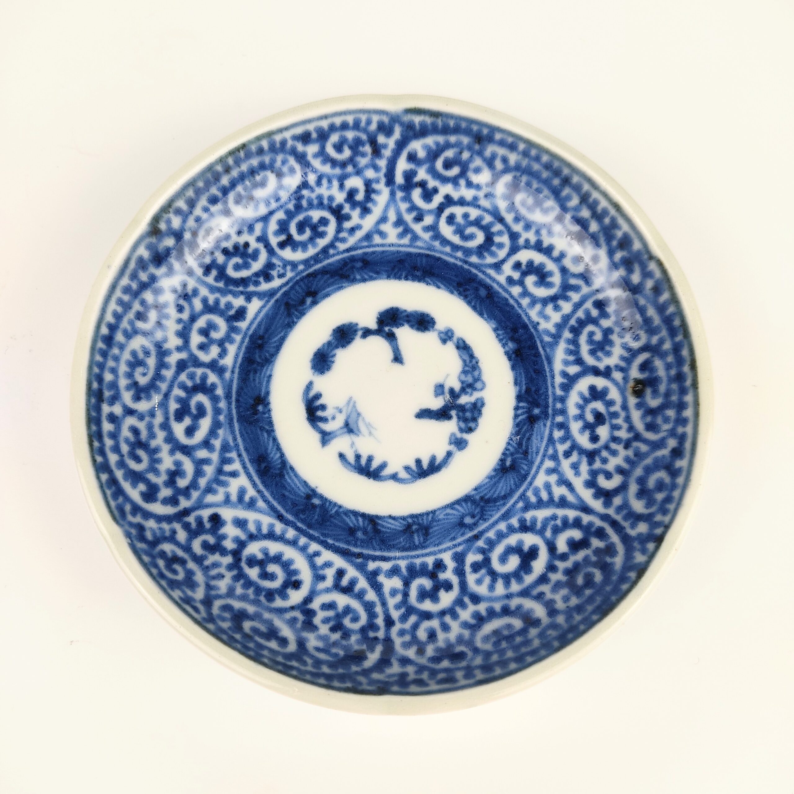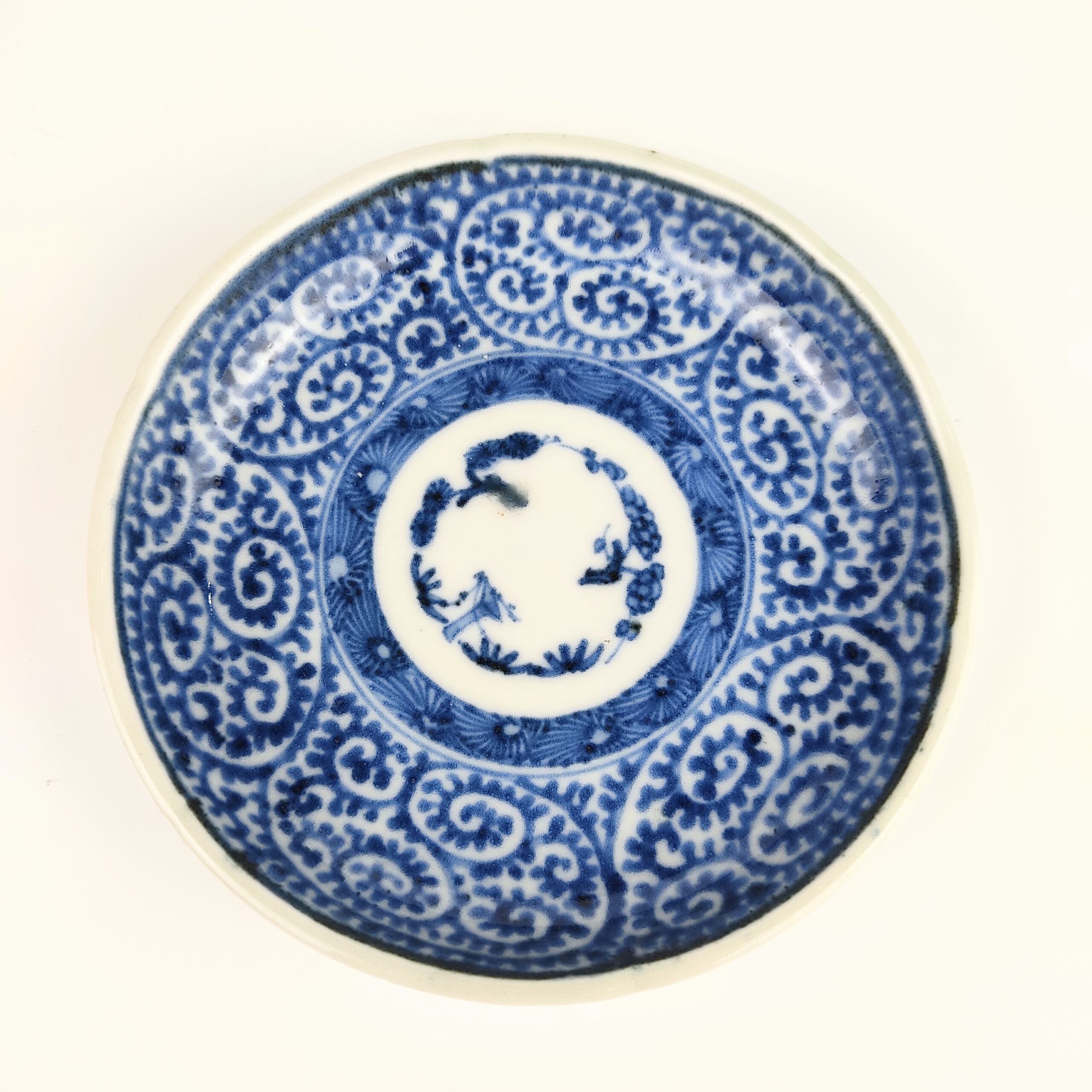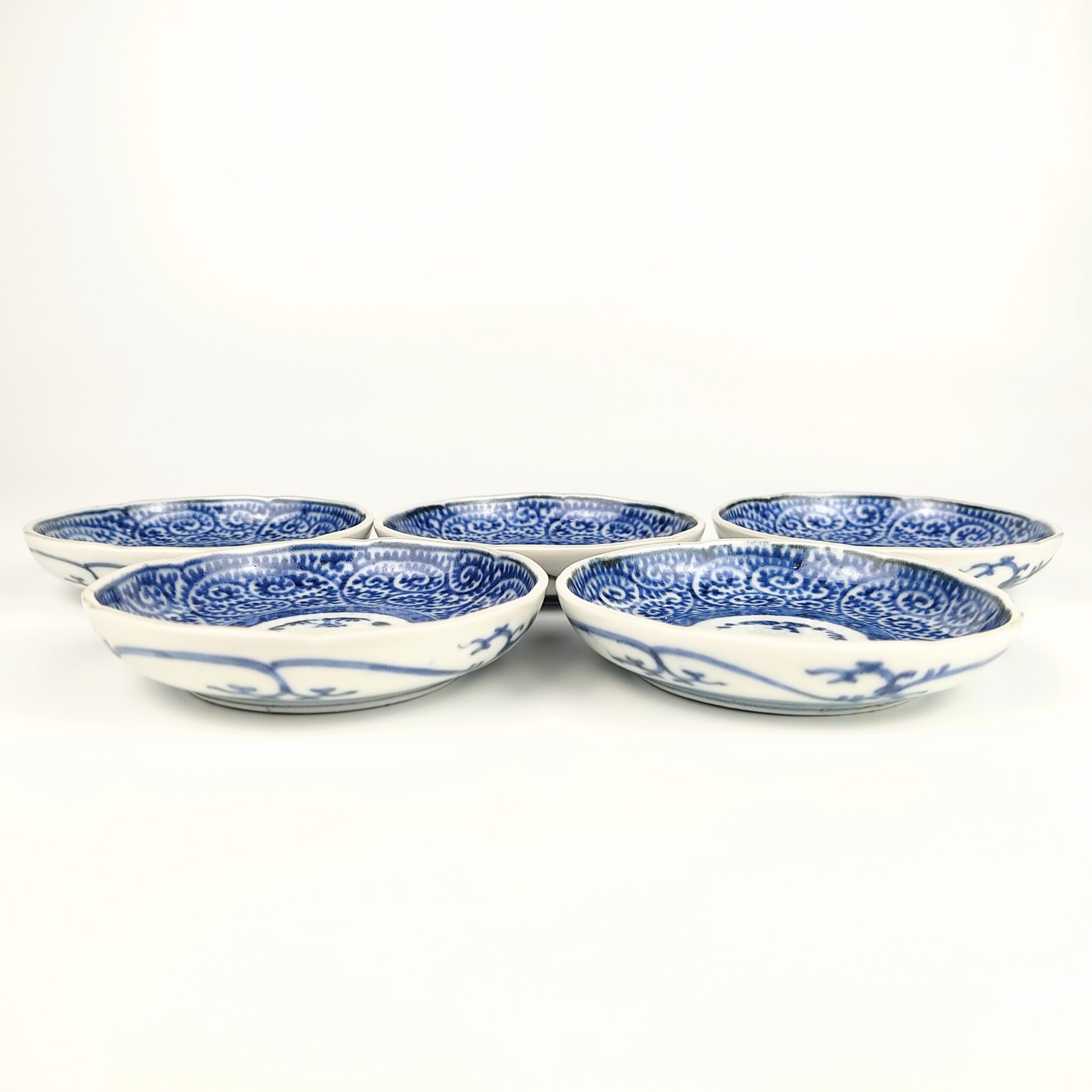 Imari ware blue and white small dish with design of octopus arabesque,set of 5