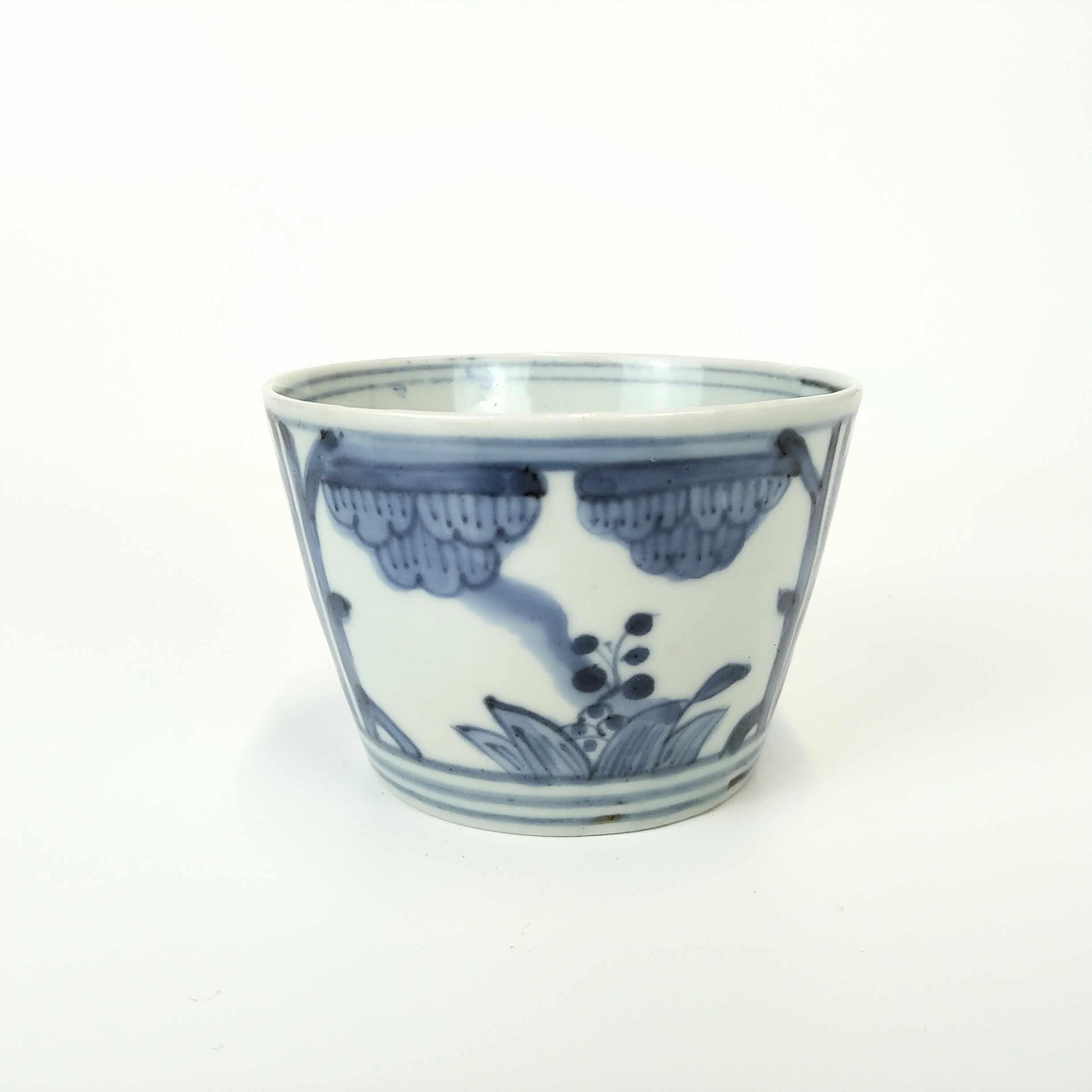Imari ware blue and white soba cup with design of flowers