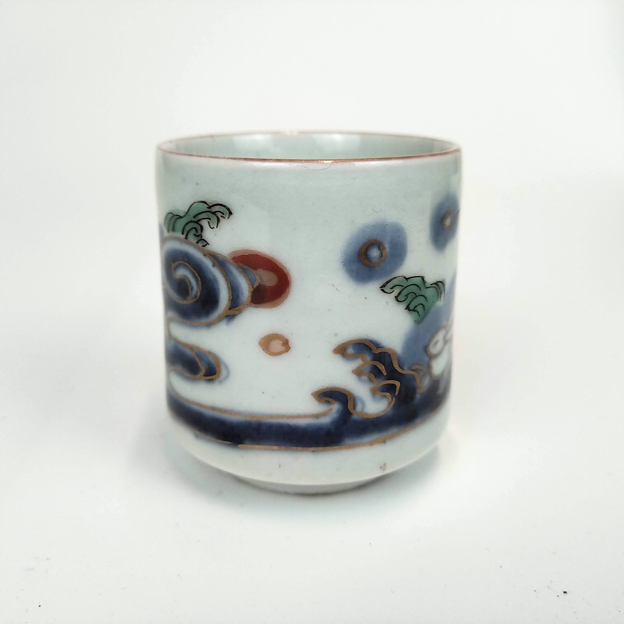 Imari ware colored small cup with design of wave and rabbit