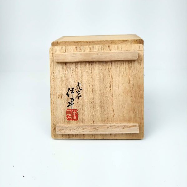 Kutani Ware blue dots Sake Cup With design of tiny writing,signed