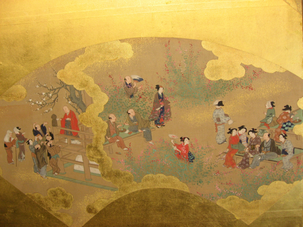 四季風俗図扇面貼交6曲屏風